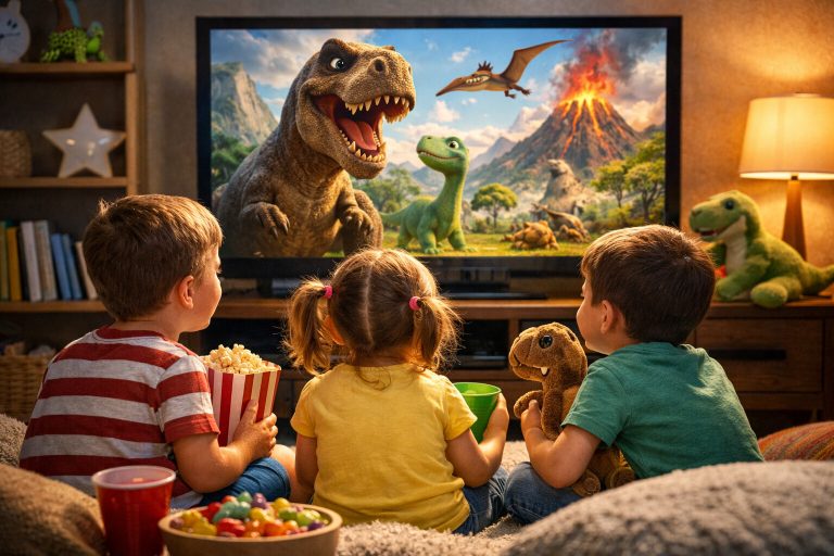 Some children may feel uneasy while watching dinosaur movies, mainly due to the creatures’ towering appearance, roaring sounds, and chase scenes. It is important to understand that sensitivity varies from child to child, so it’s important to consider their age and temperament. For kids who already love dinosaurs, gentle and friendly portrayals can actually boost excitement rather than fear. The above-listed movies about dinosaurs for kids are a great start to introduce kids to prehistoric creatures.