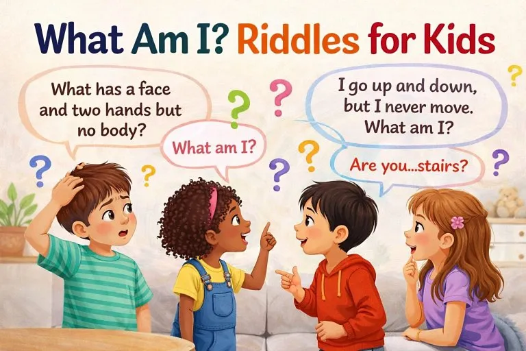 Fun and tricky “What Am I” riddles for kids with answers to boost thinking skills, creativity, and problem-solving in an enjoyable way.