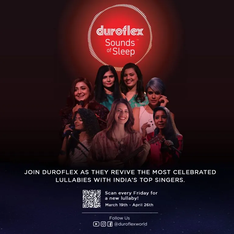 Duroflex Sounds of Sleep is a one-of-its-kind digital series of Indian lullabies, each one recorded for your baby by prominent female Indian singers known for their distinct voices. It is hosted by philanthropist, actress, and new mom Kalki Koechlin, who is delighted to share this baby-bonding experience with new parents. Being a musician and singer, she has always understood the power of music, and has recently re-discovered the joys of lullabies after giving birth to her daughter and singing to her.