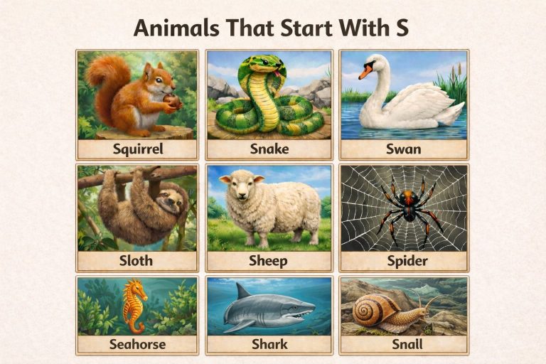 Fun and easy list of animals that start with S to help kids learn animal names with pictures and simple explanations.