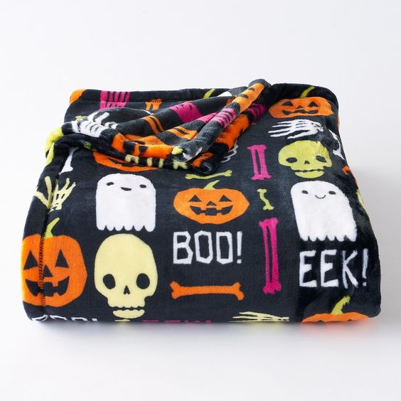 All one needs is a soft, plush, and fluffy blanket to keep warm while cozying up for a scary movie on a Halloween night. Consider the ones with spooky bats, jack o lantern, haunted house prints, or scary messages to gift in your spooky basket.