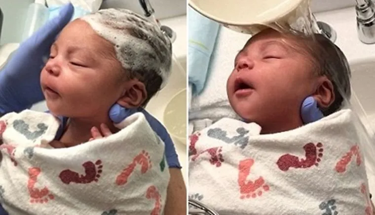 This little girl was born in Dayton, USA, some days ago. Her parents named her Amira, meaning “Princess” in Hebrew. Her proud and happy Dad couldn’t stop himself from clicking umpteen pictures of his beautiful little girl. But there is one particular moment he captured, while she was being given a head bath, that has become eternal. Since the Dad posted this video on Facebook, it has warmed the hearts of millions of people around the world, teaching them how happy simple moments in life can make us. There is a big reason the video has become so popular: