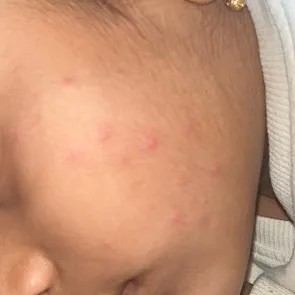 A. hi mom looks like some allergy or some insect bite show to doctor check if any anti alergent is advised can be given try to find out the cause of it